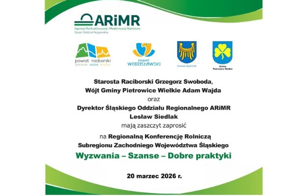 „Wyzwania – Szanse – Dobre praktyki” – to hasło Regionalnej Konferencji Rolniczej Subregionu Zachodniego Województwa Śląskiego, która w najbliższy piątek, 20 marca, odbędzie się w Centrum Konferencyjnym w Pietrowicach...
