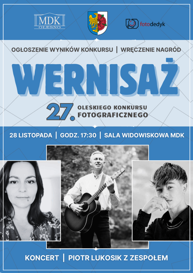Przypominamy, że już jutro9 w sali widowiskowej Miejskiego Domu Kultury w Oleśnie odbędzie się oficjalne ogłoszenie wyników 27. Konkursu Fotograficznego. To ważne wydarzenie kulturalne co roku przyciąga zarówno miłośników fotografii, jak i osoby, które dopiero rozpoczynają swoją przygodę z aparatem. Podczas uroczystej gali poznamy laureatów tegorocznej edycji, a zwycięzcom wręczone zostaną nagrody w poszczególnych kategoriach. Organizatorzy zapowiadają, że poziom nadesłanych prac był wyjątkowo wysoki, co sprawia, że oczekiwanie na werdykt jury budzi jeszcze większe emocje.