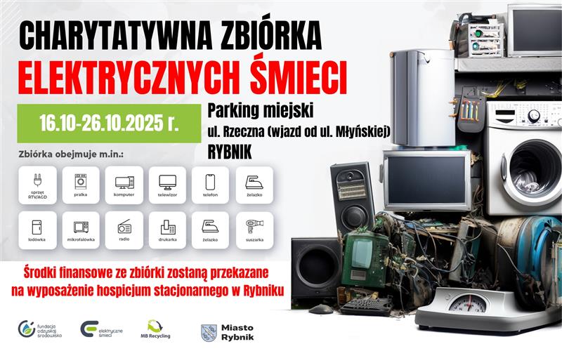 Od 16 do 26 października w Rybniku odbędzie się wyjątkowa, charytatywna zbiórka elektroodpadów. Akcja prowadzona jest pod honorowym patronatem Prezydenta Miasta Rybnika, a cały dochód zostanie przeznaczony na wyposażenie nowo budowanego hospicjum, które wkrótce będzie służyć najbardziej potrzebującym mieszkańcom i ich rodzinom.