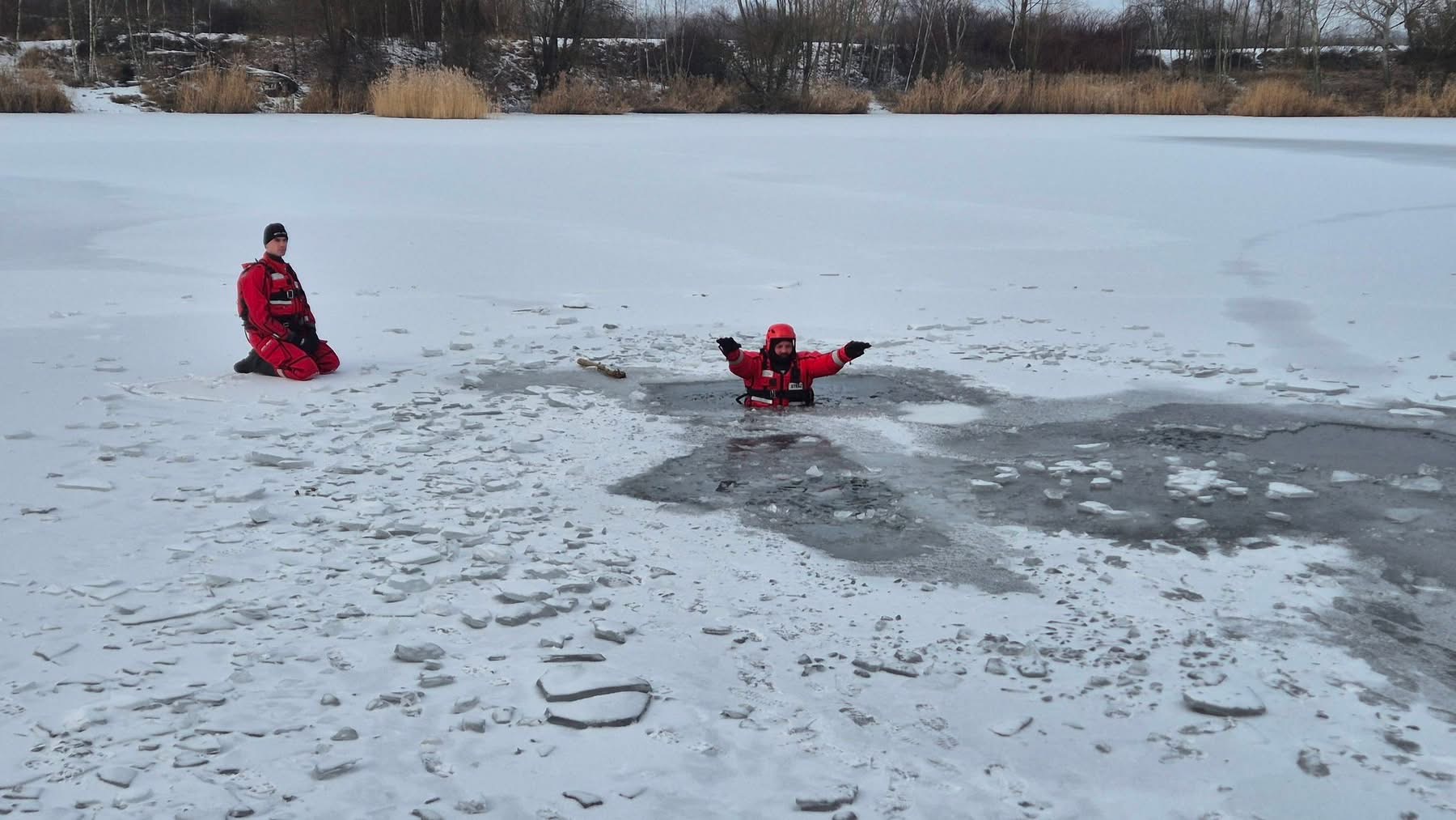 Druhowie z Ochotniczej Straży Pożarnej w Krzyżanowicach wspólnie ze strażakami z Komendy Powiatowej Państwowej Straży Pożarnej w Raciborzu kilka dni temu udali się na zbiorniki wodne znajdujące się na terenie raciborskiej żwirowni. To właśnie tam zaplanowano i przeprowadzono specjalistyczne ćwiczenia z zakresu ratownictwa lodowego, które miały na celu doskonalenie umiejętności działania w trudnych i niebezpiecznych warunkach.