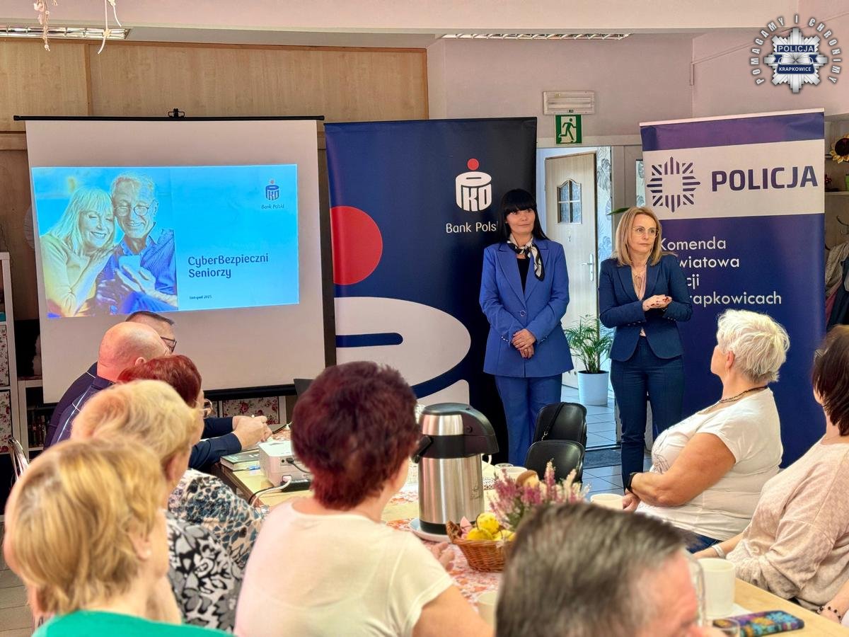 Wczoraj (07.11) w Domu Dziennego Pobytu “Jarzębina” w Zdzieszowicach w powiecie krapkowickim odbyła się debata poświęcona bezpieczeństwu seniorów w internecie, ale i w życiu codziennym. Spotkanie poprowadzili funkcjonariusze Komendy Powiatowej policji w Krapkowicach i Komisariatu Policji w Zdzieszowicach. Gośćmi specjalnymi były dyrektor oddziału Banku Polskiego SA w Krapkowicach Beata Gądek oraz dyrektor oddziału Banku Polskiego SA w Gliwicach Ewa Szymanowicz-Borc.