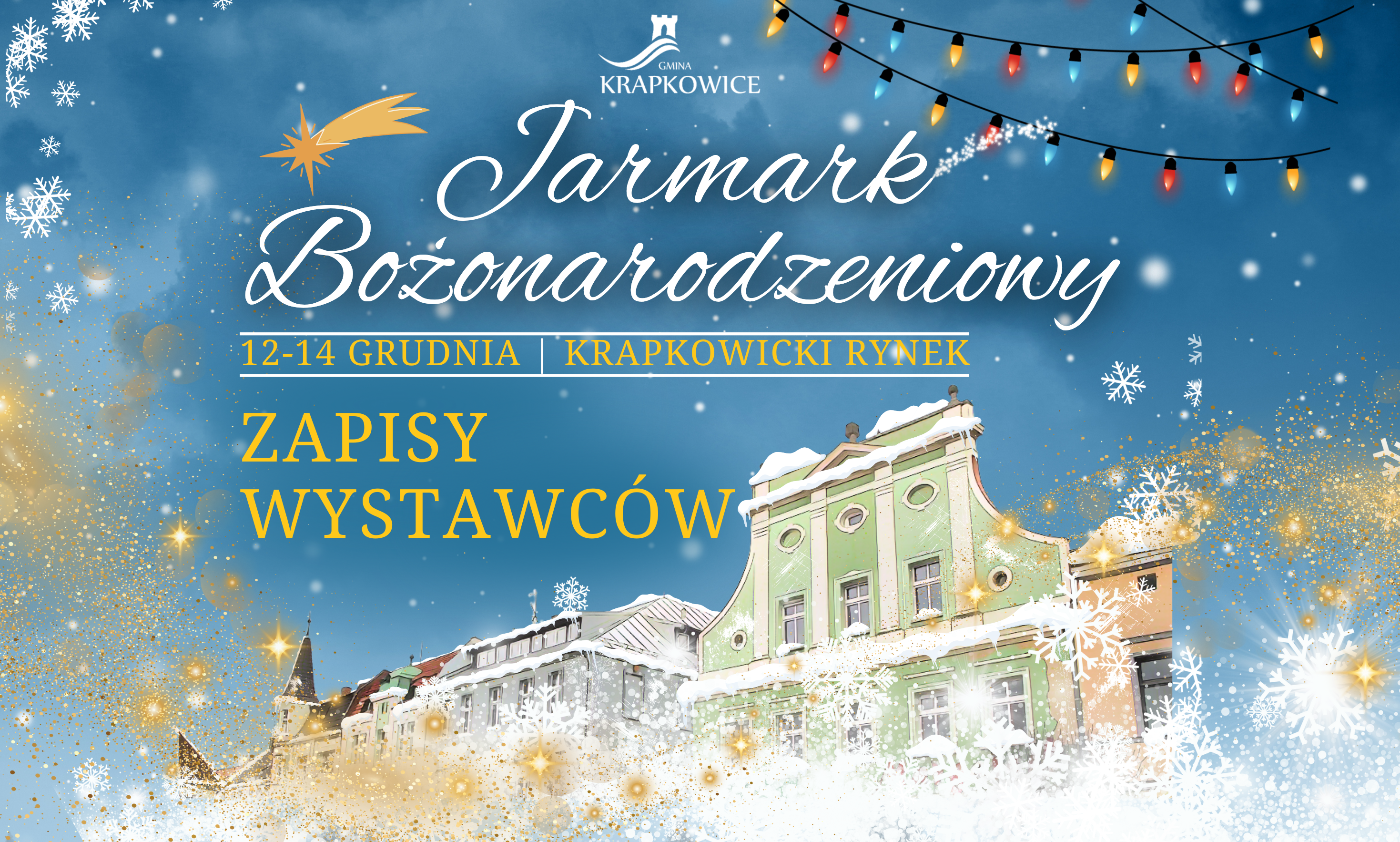 Gmina Krapkowice zaprasza wszystkich zainteresowanych wystawców do udziału w tegorocznym Jarmarku Bożonarodzeniowym, który odbędzie się w dniach od 12 do 14 grudnia 2025 roku. Tradycyjnie wydarzenie zagości na krapkowickim rynku, który jak co roku rozbłyśnie świątecznymi dekoracjami i wypełni się wyjątkową, bożonarodzeniową atmosferą.