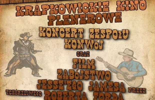 Krapkowickie Kino Plenerowe zostanie otwarte klimatem country i westernu. Podczas pierwszego piątkowego spotkania wystąpi zespół Konwój. Po koncercie nie zmieniając klimatu publiczność będzie mogą zobaczyć projekcje Zabójstwo Jesse’ego Jamesa przez tchórzliwego Roberta Forda