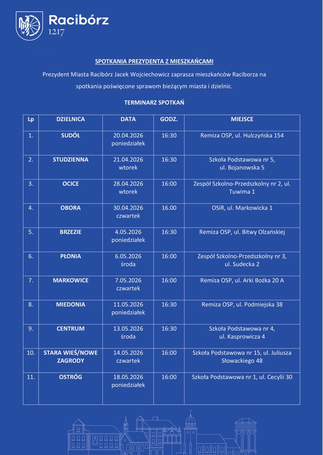 Najbliższe spotkanie odbędzie się już 20 kwietnia w Sudole. Będzie to kolejna okazja do rozmowy z przedstawicielami władz miasta w przyjaznej i otwartej atmosferze. W sumie zaplanowano jedenaście takich spotkań w różnych częściach Raciborza, co pozwoli objąć dialogiem wszystkie najważniejsze dzielnice.