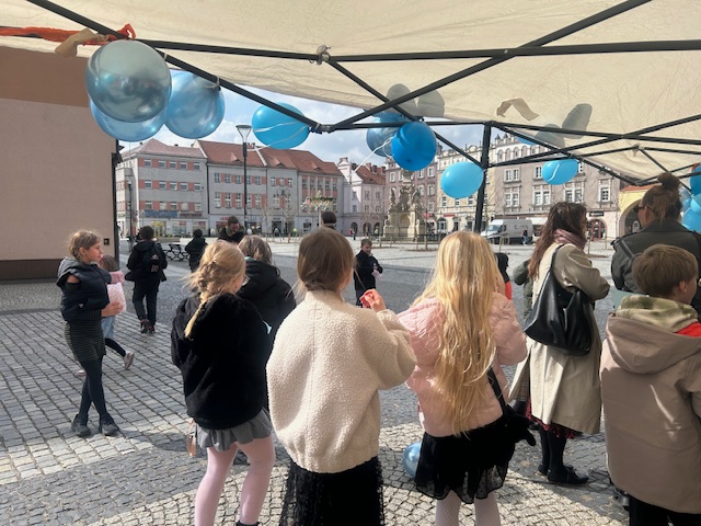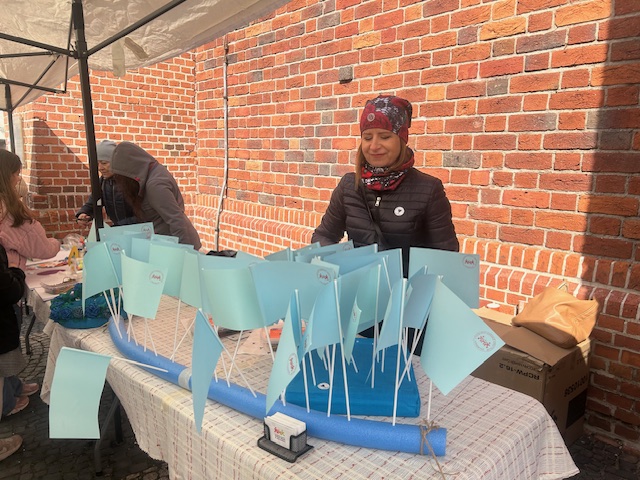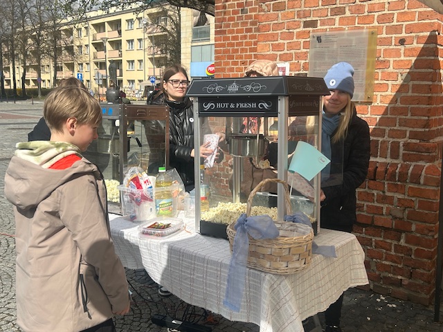 Na rynku pojawiło się także stoisko informacyjne, gdzie można było dowiedzieć się więcej o autyzmie i dostępnych formach wsparcia. Na najmłodszych uczestników czekały niebieskie flagi, balony oraz drobne upominki i słodkości, które dodatkowo podkreślały wyjątkowy charakter tego dnia.